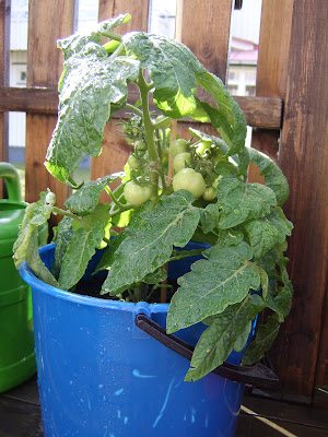Mina stora kärlekar just nu är mina tomatplantor, jag har en Hona (i röd hink) och en Hane (i blå hink). Båda är redan proppfulla av tomater! Sanningen att säga så gör jag ett litet experiment för att se vilket som är det starka könet, i detta fall innebär det vilken planta som ger flest tomater.